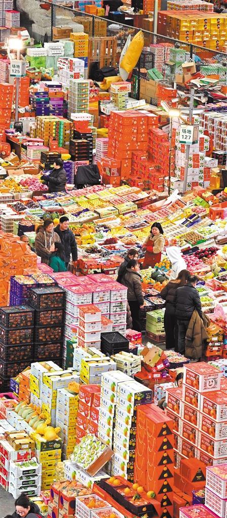 2月9日,浙江义乌市果品市场水果琳琅满目。春节临近,当地市场货源充足、购销两旺。 吕 斌摄(中经视觉)